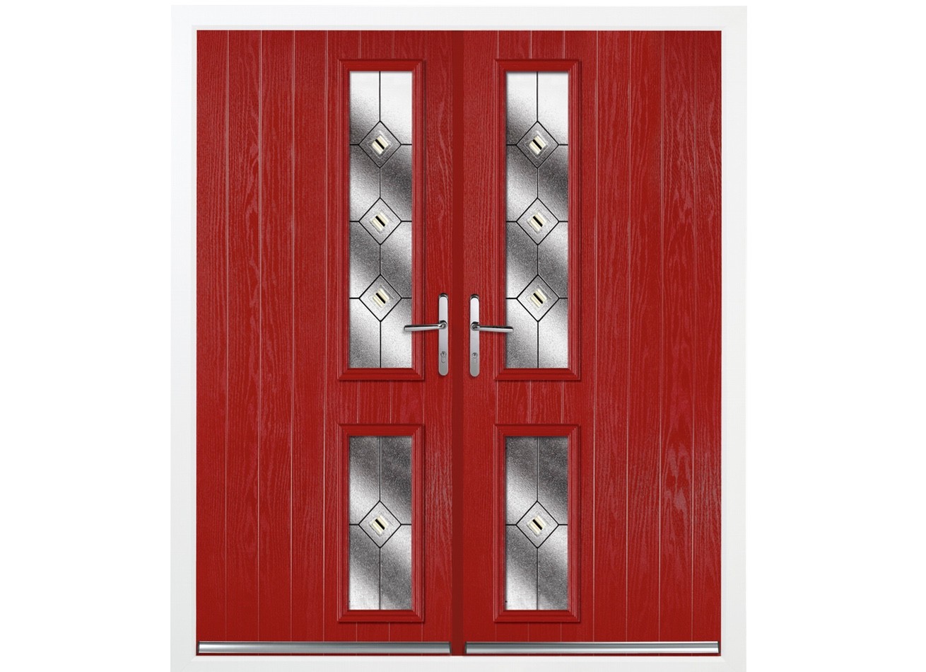 By using an exceptionally stable glass reinforced polyester door slab (the opening part of the door) within a reinforced extruded uPVC frame fitted with twin brush piles and a Q-Lon seal for winter-beating draught exclusion. Along with the latest screwless glazing cassettes, this gives you a durable, secure, thermally efficient (typically six-times better than wood) and virtually maintenance-free door that'll look amazing for years.